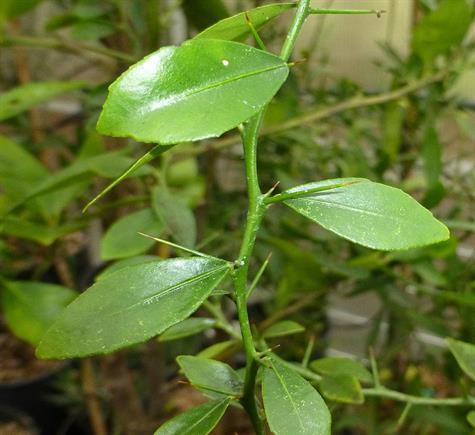 Leaves are about one quarter the size of C. inodora, and the second of the dual spines is much reduced.
