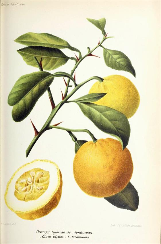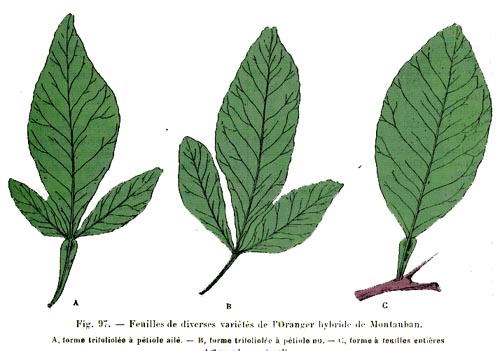 A drawing derived from Revue Horticole shows the different leaf forms of the Citrange de Montauban.