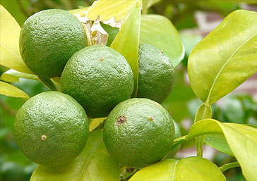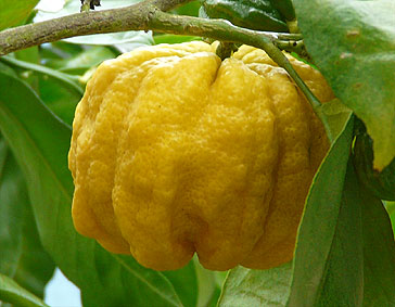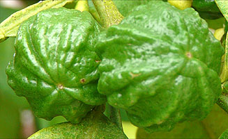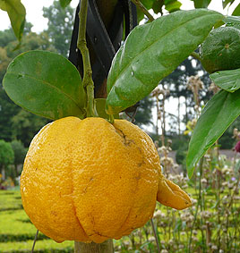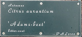 Bitter Orange 'Adams-beet' is Dutch for 'Adam's Bite'. Apparently refers to the circular ring which appears at one end of the fruit. Just visible here on the lower right immature fruitlet.