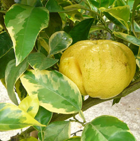 Variegated Bitter Orange. This is the form with yellow variegation. There is also a white variegated type.